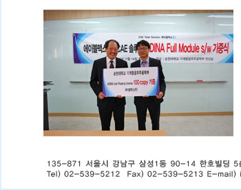 에이블맥스(주)와 순천대학교 산학협동협약 및 ADINA Full Module s/w 기증식