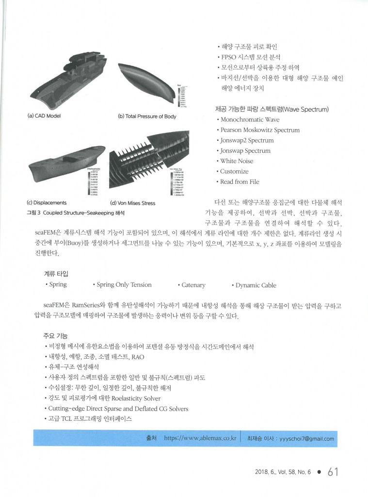 선박/해양 구조물 해석 소프트웨어 seaFEM 이 기계저널에 실리게 되었습니다.