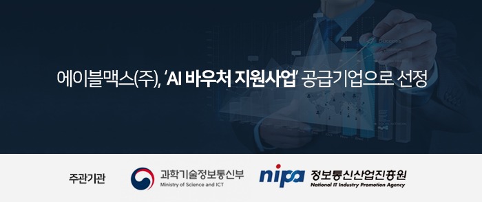 에이블맥스(주)는 과학기술정보통신부와 정보통신산업진흥원이 주관하는 “2020년 AI 바우처 지원사업” 공급기업으로 선정되었다.