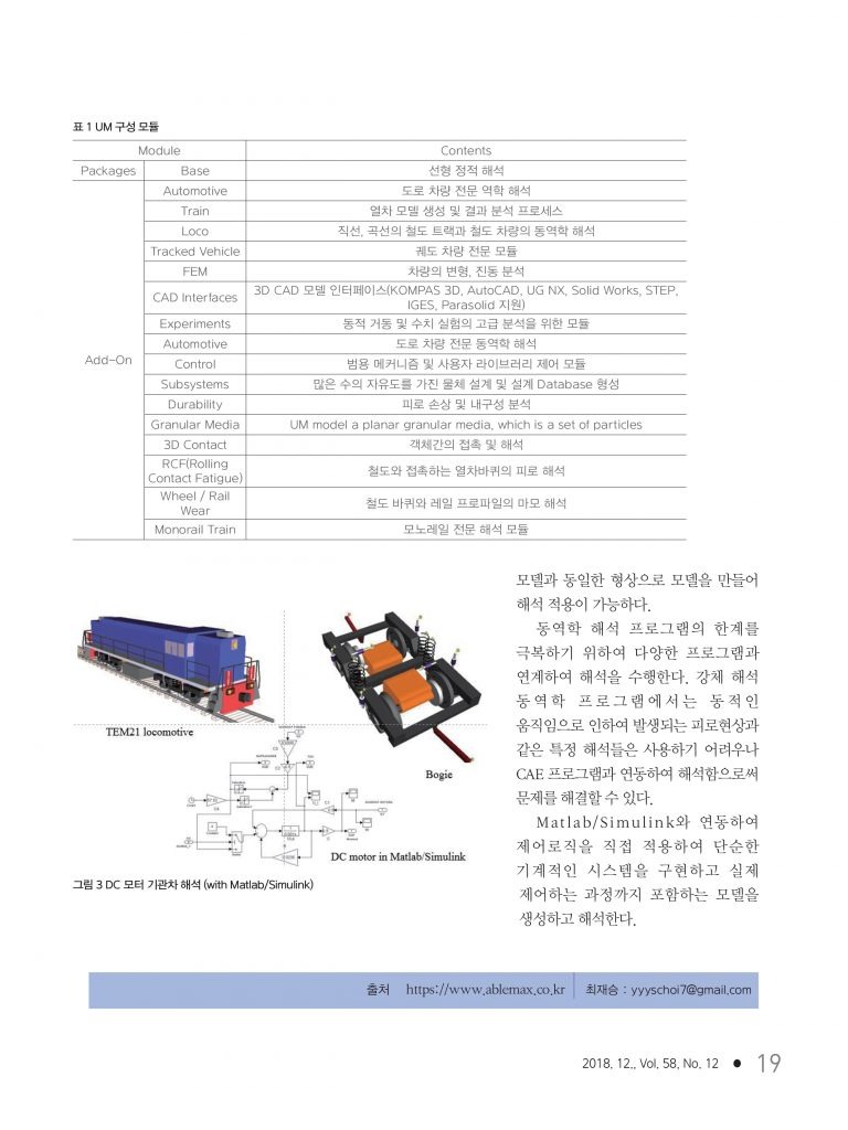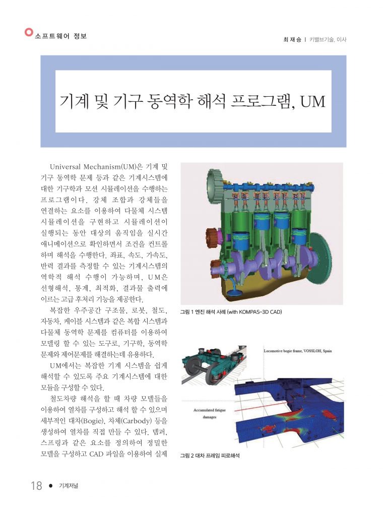 기계 및 기구 동역학 해석 프로그램, UM 이 기계저널에 실리게 되었습니다.